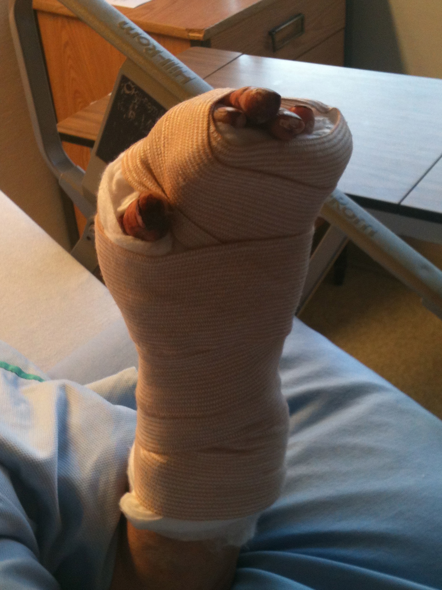The x-rays later confirmed I came very close to severing the thumb and forefinger. A tendon on the middle finger was also severed.